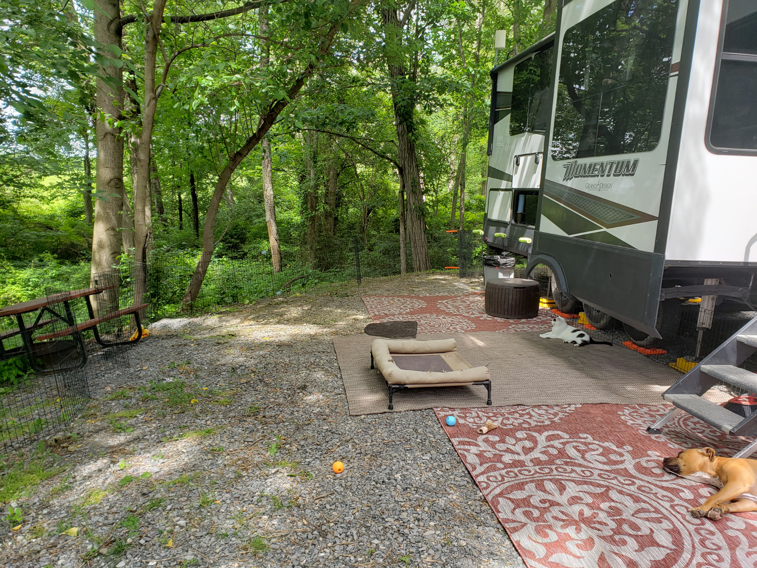 Hershey is an excellent park for walking around. It has quite a few roads and trails that go off into the wooded hills. The ground can get pretty soft if you get off the gravel of your site so watch out for that. I saw someone sunk about 6 inches in and it took a bit of work to get them out.